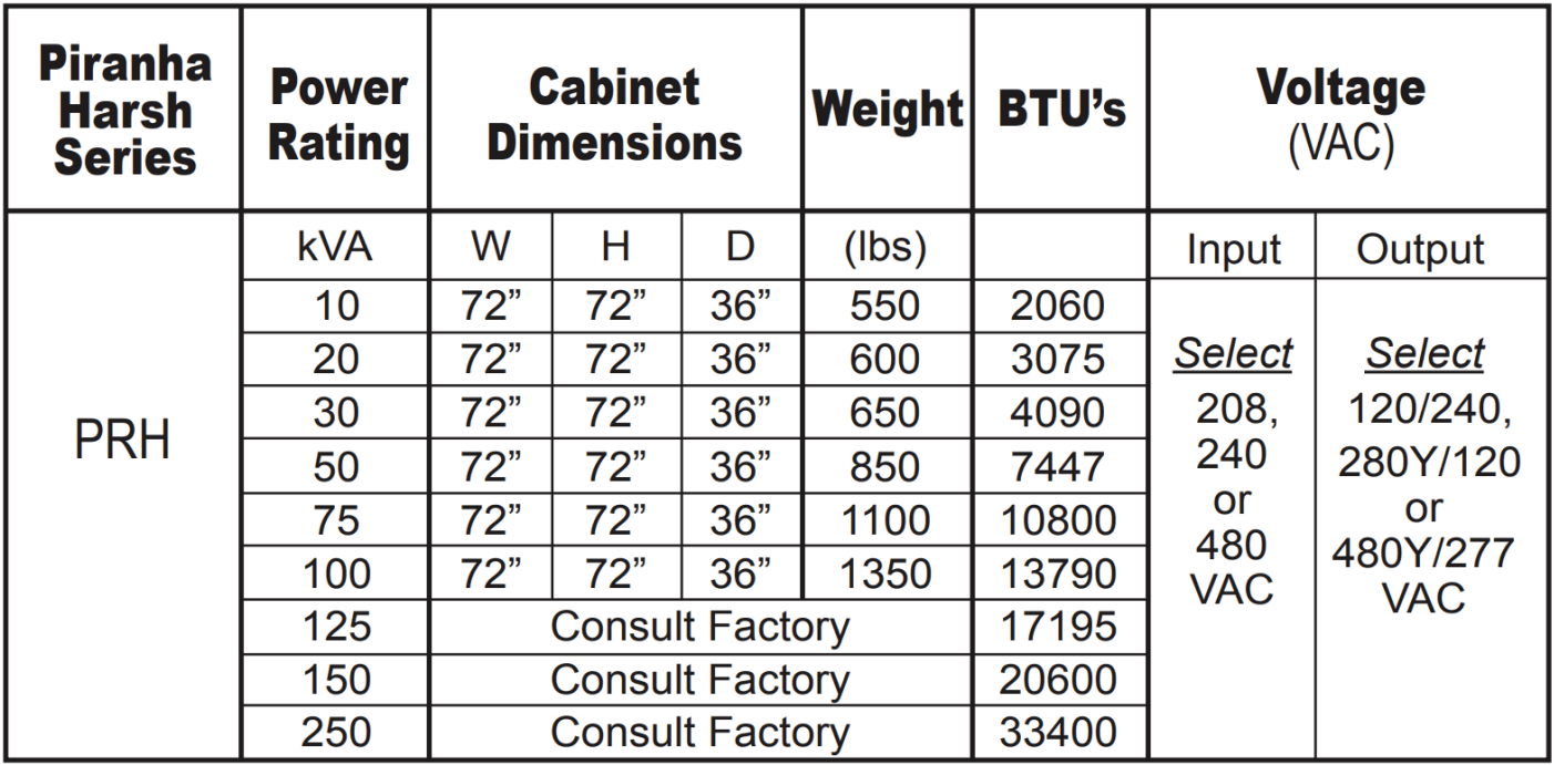 • 120/240, 208Y/120 or 480Y/277 VAC output 60 Hz